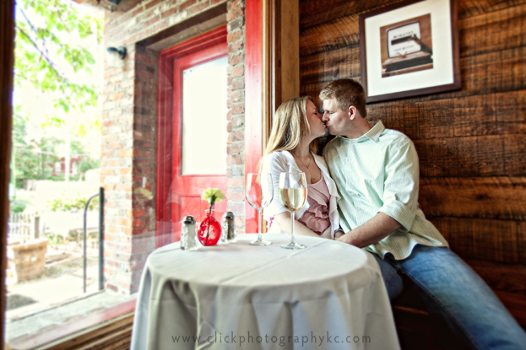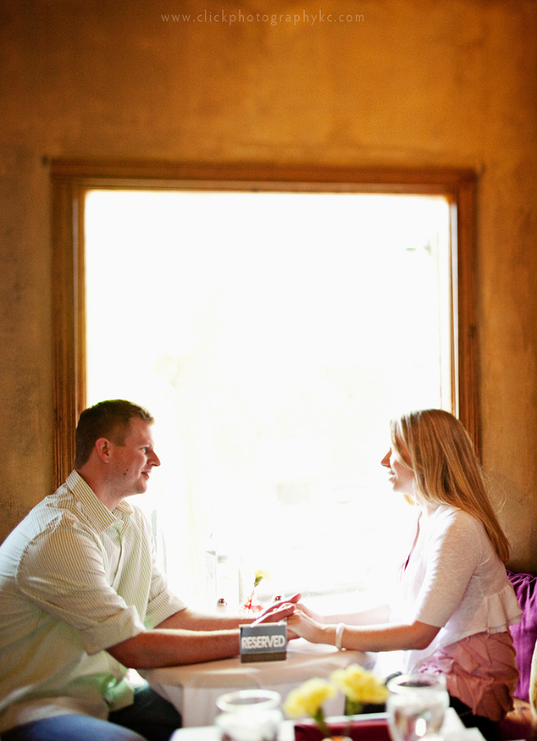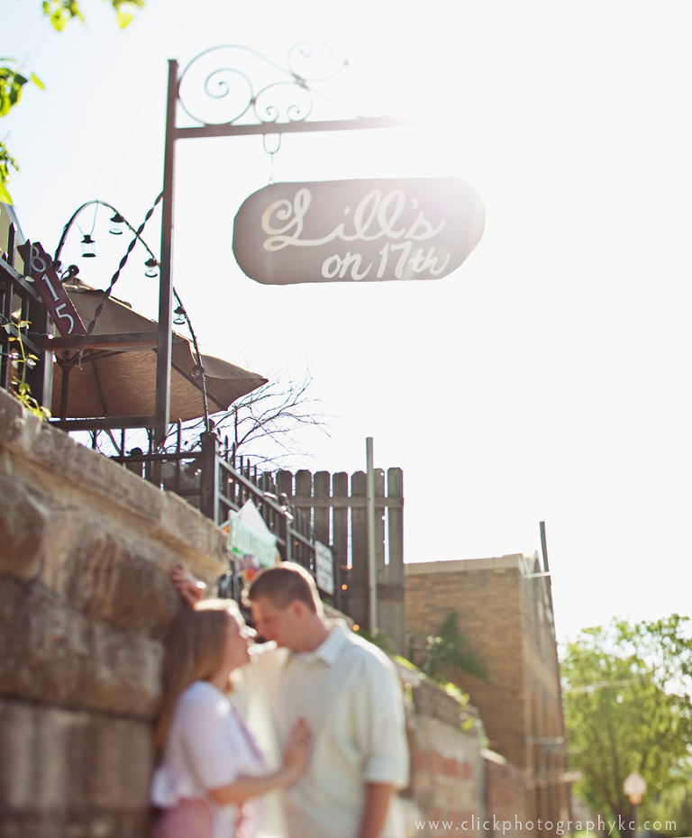 Our session started off at a place of sentimental value to Carly & Adam. Wait, wait….I should also mention Adam is a total ROMANTIC! Ladies, I swear you will want your boyfriends and husbands to take notes. …anyway, Adam told me that he surprised Carly with his marriage proposal by taking her out to dinner at Lill’s on 17th (which has a pet-friendly patio). He planned everything down to bringing the dog and including the owner of the restaurant. Carly was successfully surprised! And of course, she accepted. 🙂 So…thus the reason I decided to call the lovely owner of Lill’s and ask permission to photograph them there. She remembered them right away and told me I was more than welcome. This restaurant is SUPER FABULOUS, BTW…so if you get a chance, I highly recommend an evening dinner there.