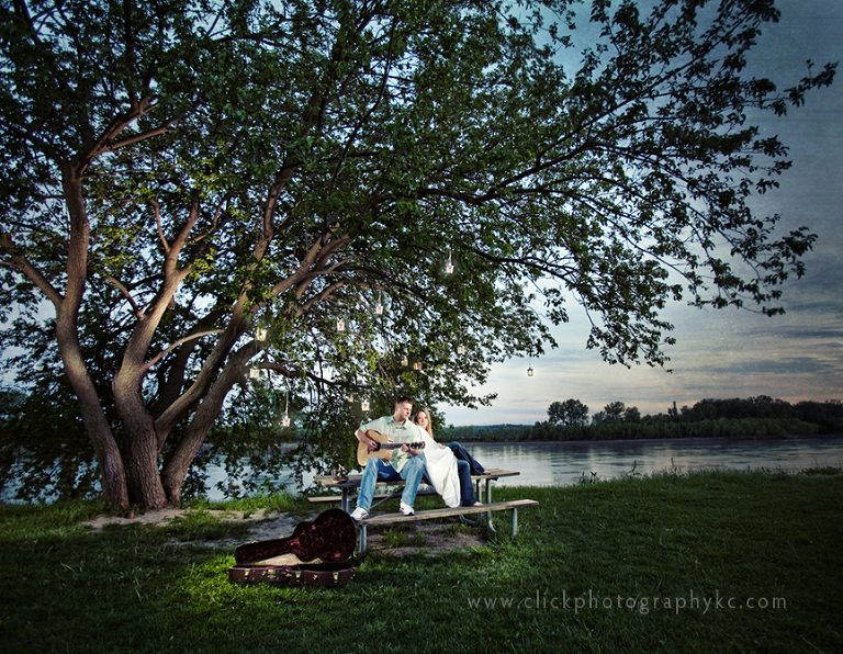 Ok…so this was the second part of our photo adventure….into the signature shot(s) we go. I had in my head sort of what I wanted for this particular concept photo…but it wasn’t until the night before that I found a perfect spot for it (which Matt and I found at about 11p…in the dark….pitch dark…walking through English Landing…trying not to trip…and freezing in flip flops and shorts). So here’s what we did….Adam and Matt (the tall dudes) hung twine from the branches and I helped tie little white lanterns to the ends. Carly was the candle-fairy and started the fires. And WALA! We had an AWESOME scene under a lanterned-filled tree overlooking the Missouri River. .jpg)