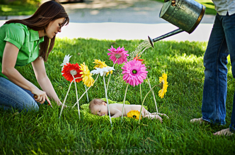 FYI: There were no babies harmed in the making of the above image. 🙂 About an hour before our session, I randomly had a thought (my brain doesn’t always give me ample time to do things) for a neat baby portrait…but it would require a water pail. I had one but it’s beige, plastic, and overall ugly. Made me kick myself for not getting the super cool, long spouted chrome one I saw at Lowe’s a few months ago, but I was determined to pick one up along the way. I stopped at 3 stores trying to find one to buy, and I even stopped by The Shabby Hattie, in Parkville, thinking they’d have one for sure that I could just borrow…but all she had were tea pots. 🙁 I arrived at my session empty handed…but still thought I could do part of the idea. …as I was setting up, a fabulous neighbor a couple houses away came to the rescue with the PERFECT PAIL! Sometimes things just work out. 🙂 Thank you neighbor lady!