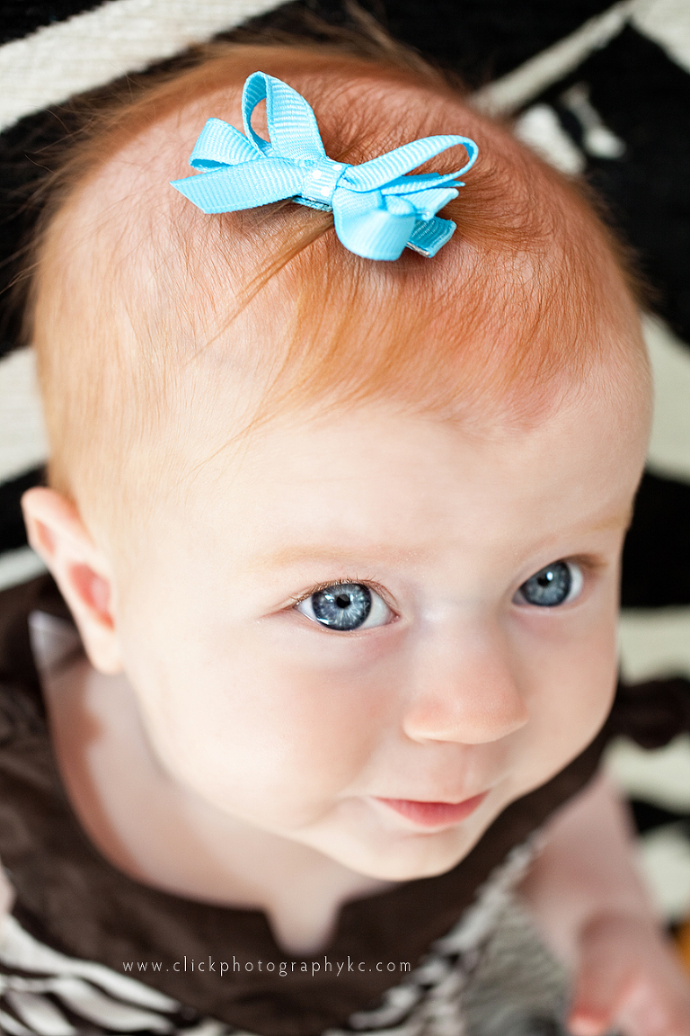 In a recent email, Megan told me “Red” was not yet sitting on her own yet but working on it.  “Red” ?  I was curious about the new nickname for Ryan…that is, until I walked in their door and saw her beautiful hair.  RED.  Totally fitting.  She was ALL smiles for our session. (Happy baby = Happy photographer)