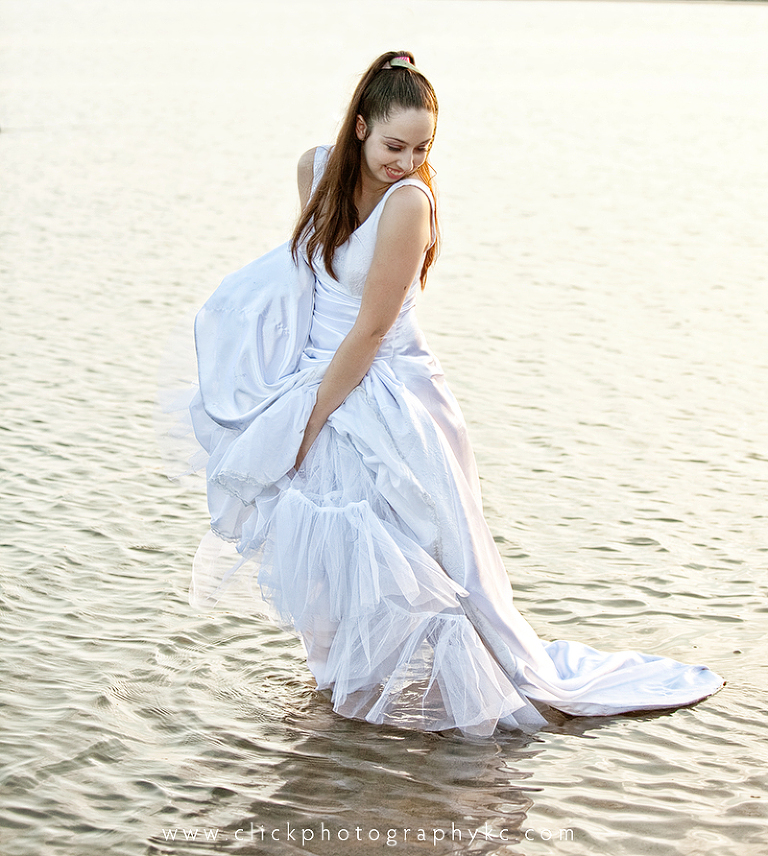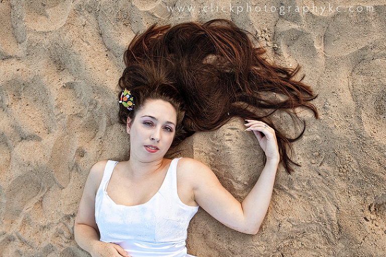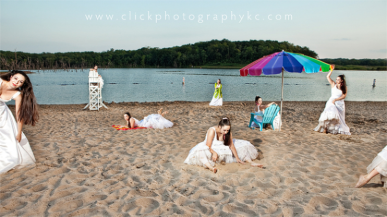 Last, but not least…the Summer collection of Sarah.  This was definitely a session to finish with a bang.  We had really wanted to do the “summer” scene on a beach…and as you may know, Kansas/Missouri lacks a good beach scene.  My first thought was Olathe Lake…the place that as a teenager, I would go to with friends and of course do all sorts of things we shouldn’t have been doing (like cliff-jumping nude…ah, the good ‘ol days).  Being as it has been a good decade since I was last there, I figured I would look up the hours for the beach….nothing to be found online, so I call…and found out that it’s been shut down for years.  Wow.  Can’t say I’m super surprised, the water always was a bit dodgy anyway.  So, I remember there’s a beach at Shawnee Mission Park…call and find out that it was to be the last weekend open, AND they close at 6p…AND they wouldn’t allow us to photograph just on the beach after they closed (when the lighting was camera-yummy).  BUMMER!  The lady on the phone did happen to mention that I try Kill Creek Park beach.  …so I looked up the hours online and saw that they had something called “open water swimming” from 6p-7:30p…Fantastic!  …so we make plans to be there by 7p, show up right on schedule, only to find it completely deserted and the gates locked.  ARE YOU KIDDING ME?!
