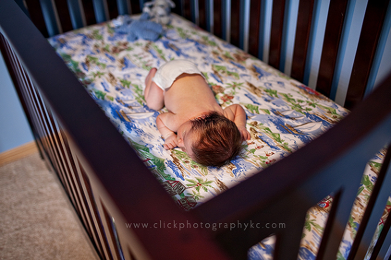 Just as I expected, he was sooooooooo beautiful.  …and sporting an awesome new crib (delivered just the night before…NFM, sure took their sweet time!).  I was especially excited about the crib set and wall color.  It was all so perfect that we didn’t even have to leave the room for the whole session.
