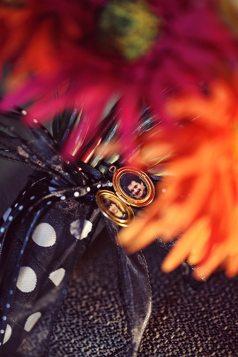 This next couple pictures contains a large load of sentimental and emotional value. Jayme’s Dad passed away in 1996. Her family presented her with a locket containing a picture of herself as a child, and a picture of her father. The locket was then attached to her bouquet…as a reminder that he is with her always…especially on her wedding day. And yes…there were definitely tears involved for this gift.