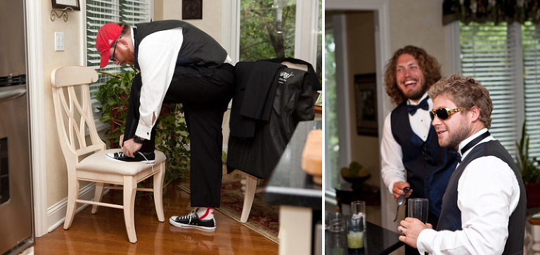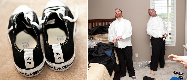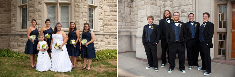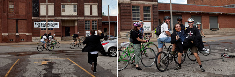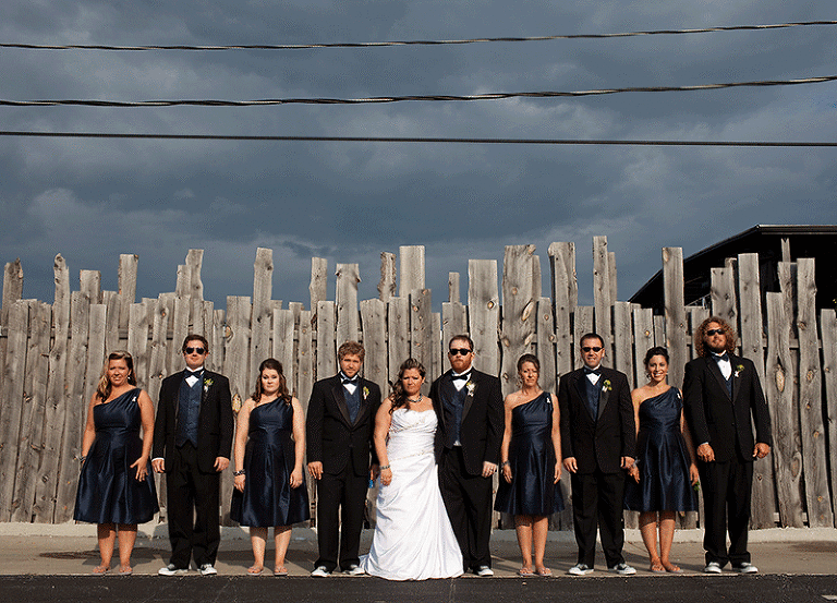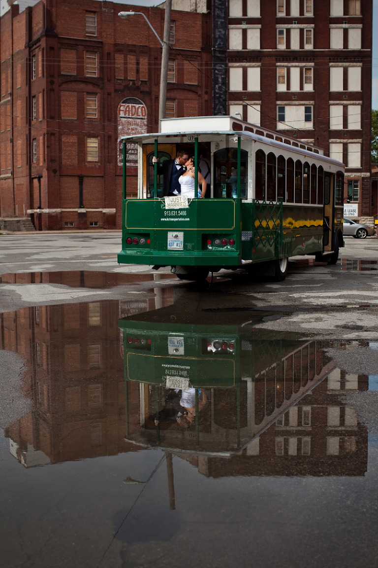 Kennie’s mother lost her battle with breast cancer about 5 years ago, but that shouldn’t keep her from being photographed on her son’s wedding day.  As luck should have it, the salon was directly across the street from the cemetery she was laid to rest.  Since there was a little free time, I had Jen give me some directions of where to find Denise and I set off to search.  Easier said that done!  I had actually given up trying to find her, and started to walk back when the sun poked out and make something sparkly catch my eye.  Right in front of Denise’s grave was a clear plastic bracelet full of silver glitter.  Gave me the chills…in a good way, of course.   Started off the stylish-shin-dig at the uber cool Vital Salon in Gladestone, MO.  HOW CUTE are those flip flops!  One of the most stylish wedding hairstyles I’ve ever had the priveledge to capture.  LOVE LOVE the contrast of hair color and the accents!And while the girls were getting purdy…the boys were up to no good. 🙂The picture on the right cracks me up EVERY SINGLE TIME I look at it.  It’s contagious!A stylish wedding just wouldn’t be complete without the talented arrangements of Emma-Ray! ABSOLUTELY STUNNING!  STUNNNNNNNNNING!Just as we were about to get back on the trolley and head to our next stop, Kennie spontaneously takes off into a full-on sprint after a group of bicyclists rolls by.  They are TOTAL strangers, but he wanted to snag a photo-opp with them…and there just happened to be a guy just as spontaneously crazy as Kennie and decided to lift him up for the shot.  🙂  I love the little random things in life. There is absolutely no rhyme or reason for this shot.  Just thought it would be fun….and it was! 🙂   Hey Snotty (which was my pet-name for the bridesmaid in the back right jumping up), you made this shot awesome!  Just had to give you a shout-out.AND OH MY THAT SKY!!!!!  The weather was perfectly designed for our photo-time.  It was a monsoon directly after the ceremony, but as soon as my camera was ready for action, the rain left and gave us the wedding gift of sun and dramatic sky backgrounds.  YEAH!Kennie!!!!!!!!!!!  I’m your biggest FAN!!!!!Where’s Kennie?And I mustent forget to mention the glorious reception venue, The Foundation!  I’m in love!  A sort of modern, rustic, art zone that transformed into a charming event location.  Perfect for Jen and Kennie!And MAJOR MAJOR Props to Julie Blanner of Coordinately Yours Event Design & Planning. Hats off to her and her assistant who put together an event that definitely turned heads.  AMAZING!!!CAUGHT YA! heheheAnother favorite ring shot to add to my collection!!!!  LOVE LOVE LOVE!Oh Jen…Kennie…Matt and I still can’t get over the fun adventure that was your wedding day.  Every person and every detail made it one of a kind in our hearts….and cameras.  09.10.11 will be remembered quite fondly as the day the Pauley’s ROCKED OUR WORLD!  Love you guys!