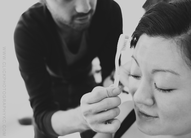 This was a first for me….tool of choice:  Toothbrush.   It actually is a brilliant idea…and very effective to grab all those delicate hairs and get them to do what you want.