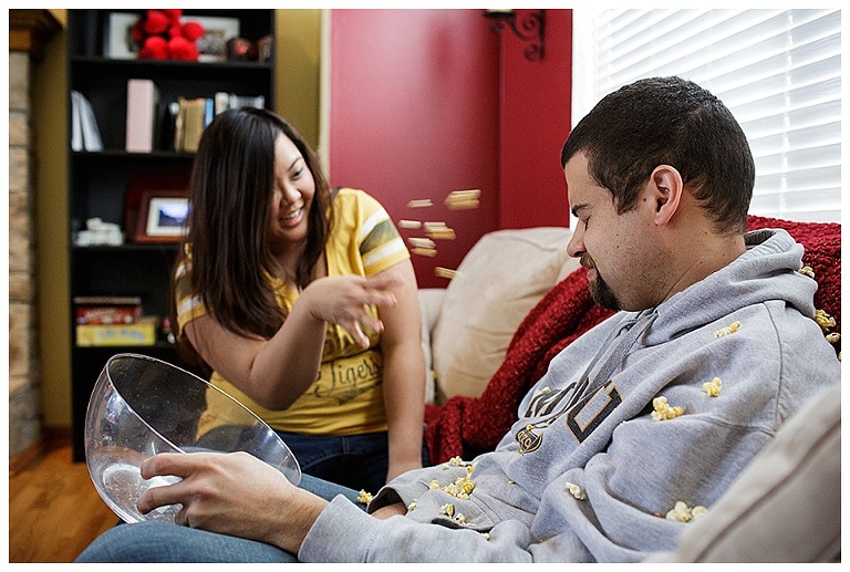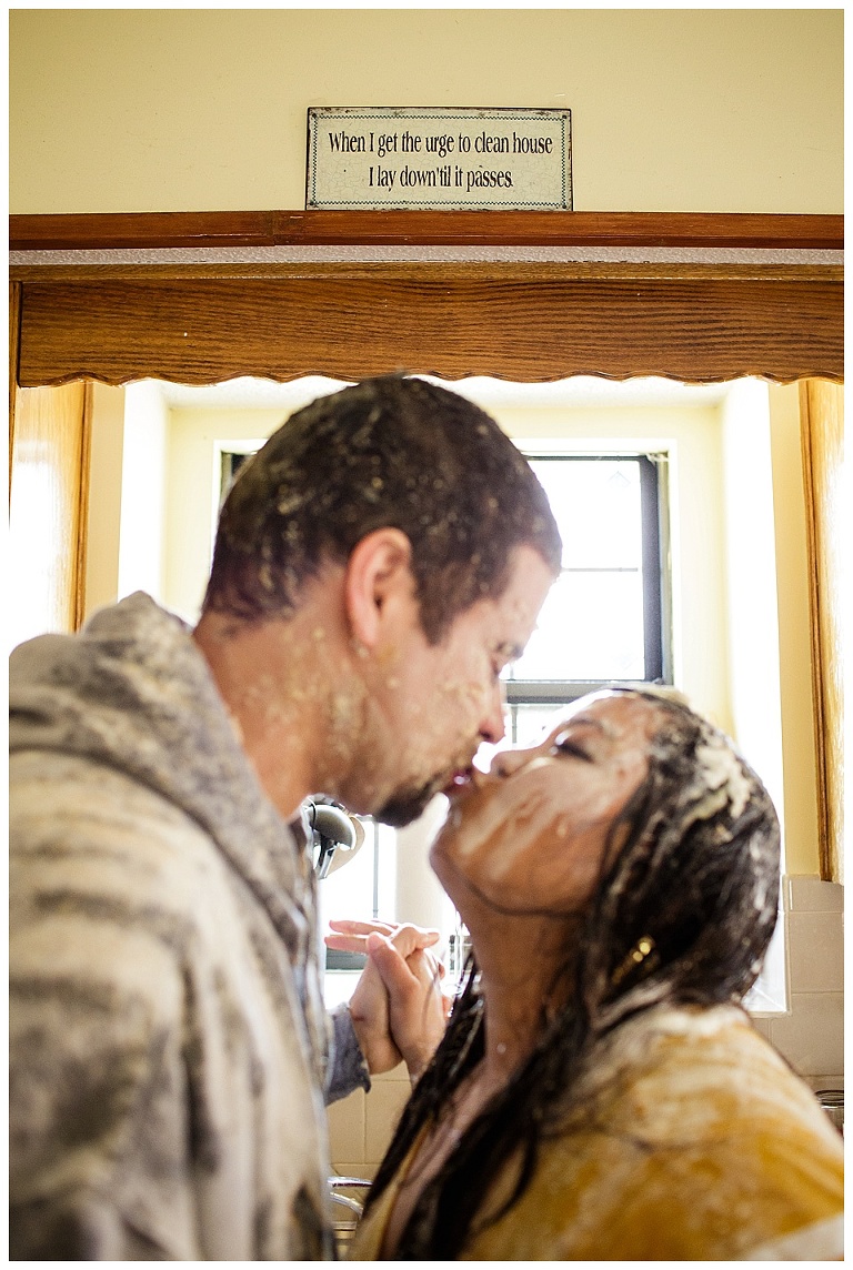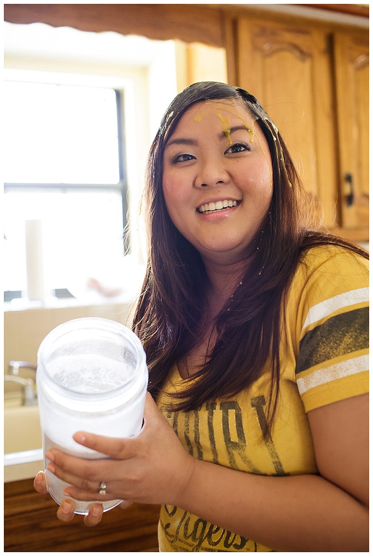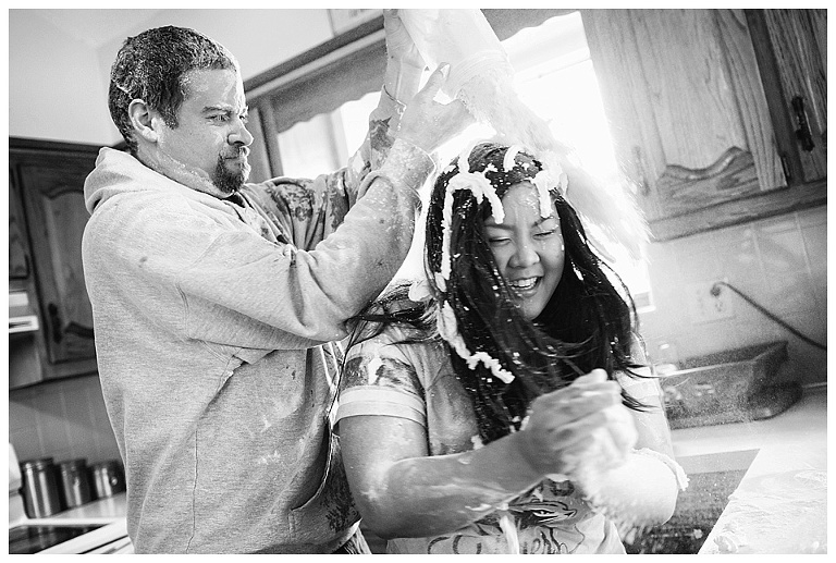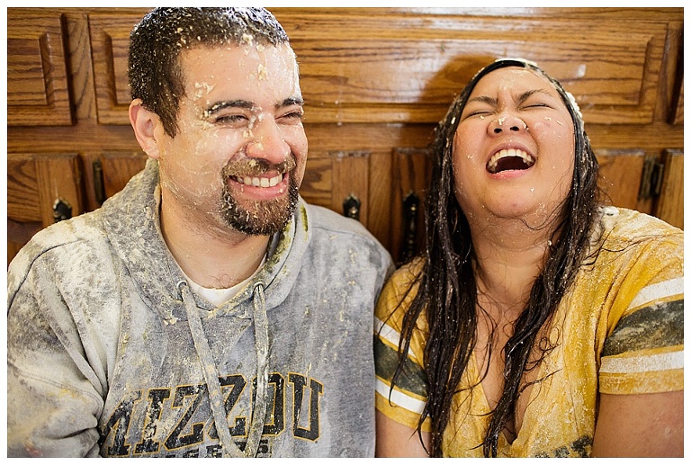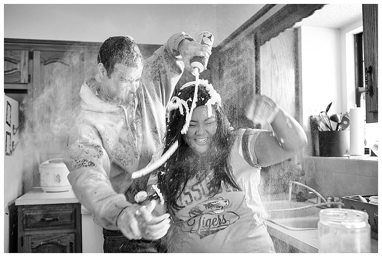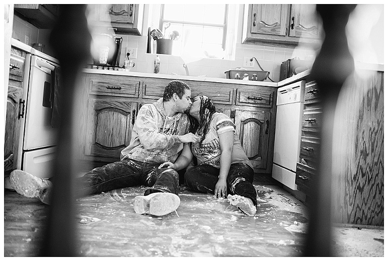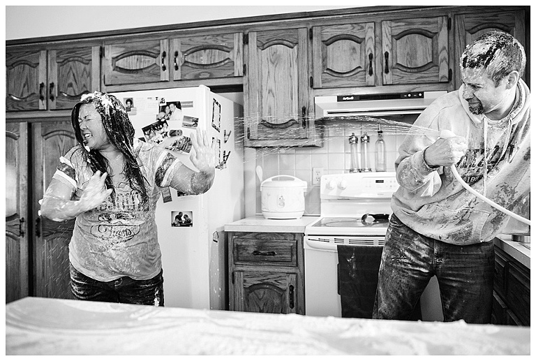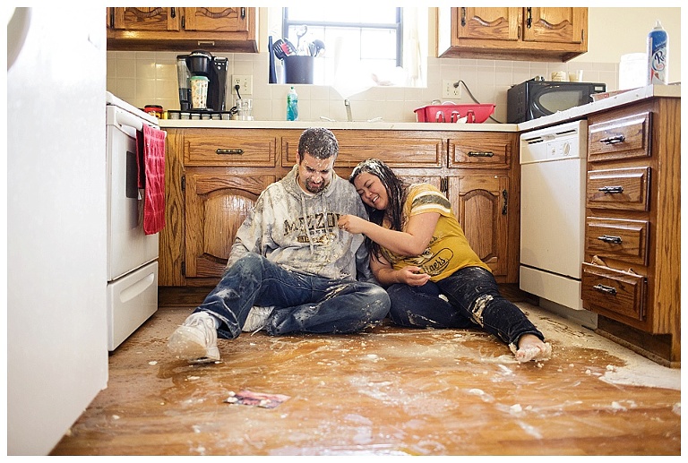 I couldn’t pass up the opportunity to capture a reenactment of one of Kat & Tyler’s most fond memories together….a food fight.  A food fight inside…their home (originally their apartment)…with EGGS!  This one goes down in some kind of record book for me…one of THE most hilarious and disgusting portrait session of all time.  So awesome.